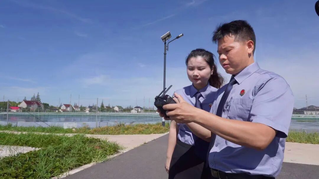 上海市崇明区检察院办案人员通过无人机调查取证。