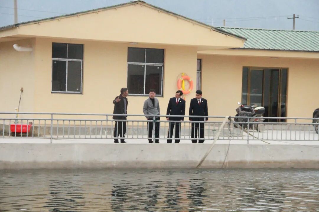 江口县检察院检察官实地调查养殖企业的养殖设施。